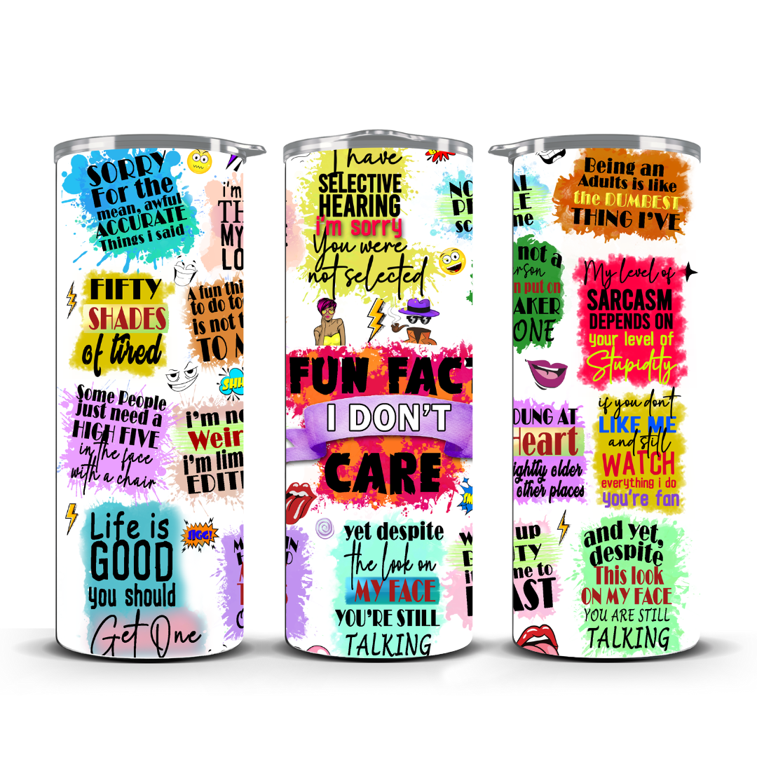 Stay cool or cozy with the FUN FACT I DONT CARE stainless steel tumbler! Its resealable lid and straw make sipping easy, while keeping your hot drinks warm for up to 6 hours and your cold drinks refreshingly chilled for up to 8 hours. Perfect for those who like their beverages just the way they want—no fuss, just fun.