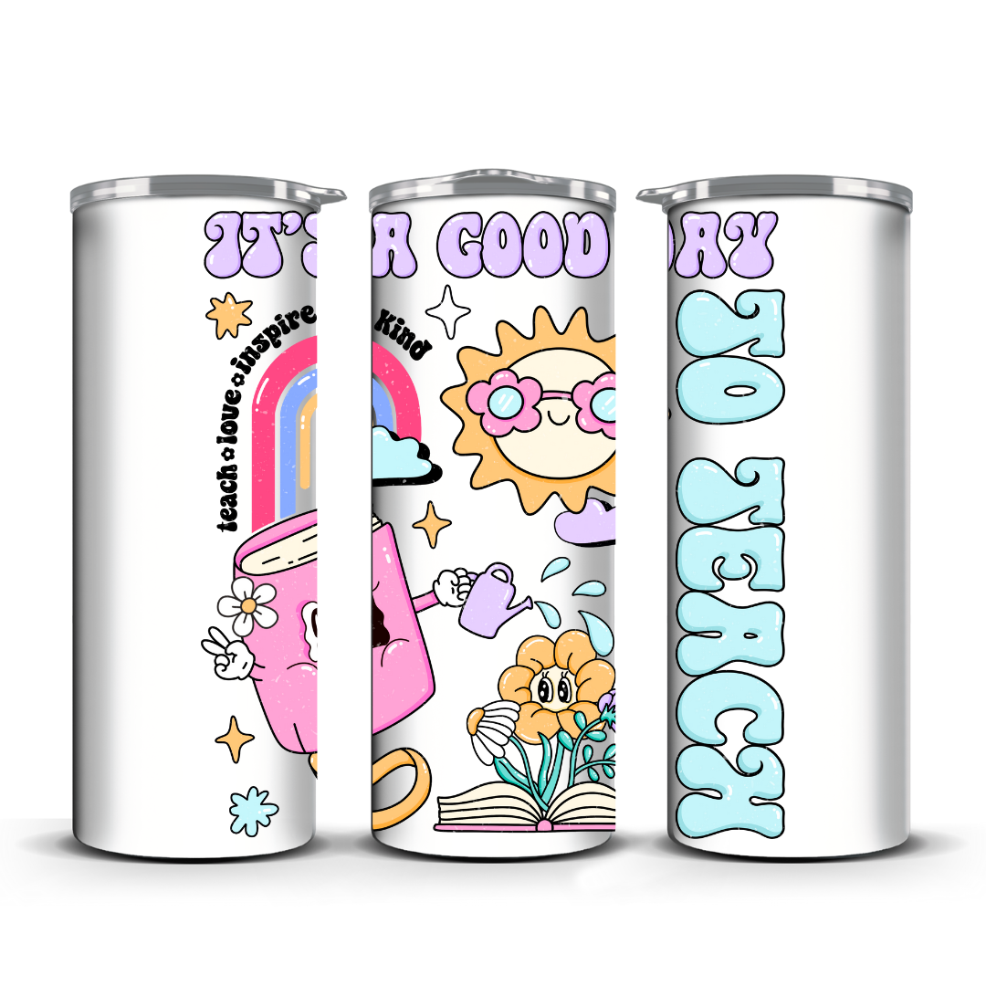 Start your day with a smile and your favorite drink perfectly temperature-controlled! This 20oz stainless steel tumbler keeps your hot drinks warm for up to 6 hours and your cold drinks refreshingly cool for up to 8 hours. Featuring a resealable lid and a handy straw, it’s the perfect companion for teachers who know it’s always a good day to teach—and sip in style.