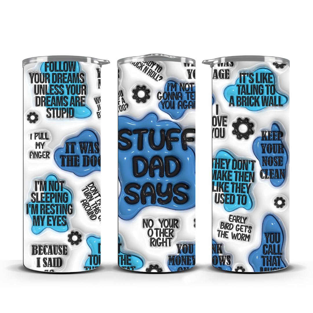 Capture Dad's legendary one-liners with this 20oz stainless steel tumbler! Perfect for sipping wisdom (or coffee) on the go, it keeps hot drinks steaming for 6 hours and cold drinks chilled for 8 hours. The resealable lid and straw ensure Dad's pearls of wisdom—and his favorite beverage—stay exactly where they belong!