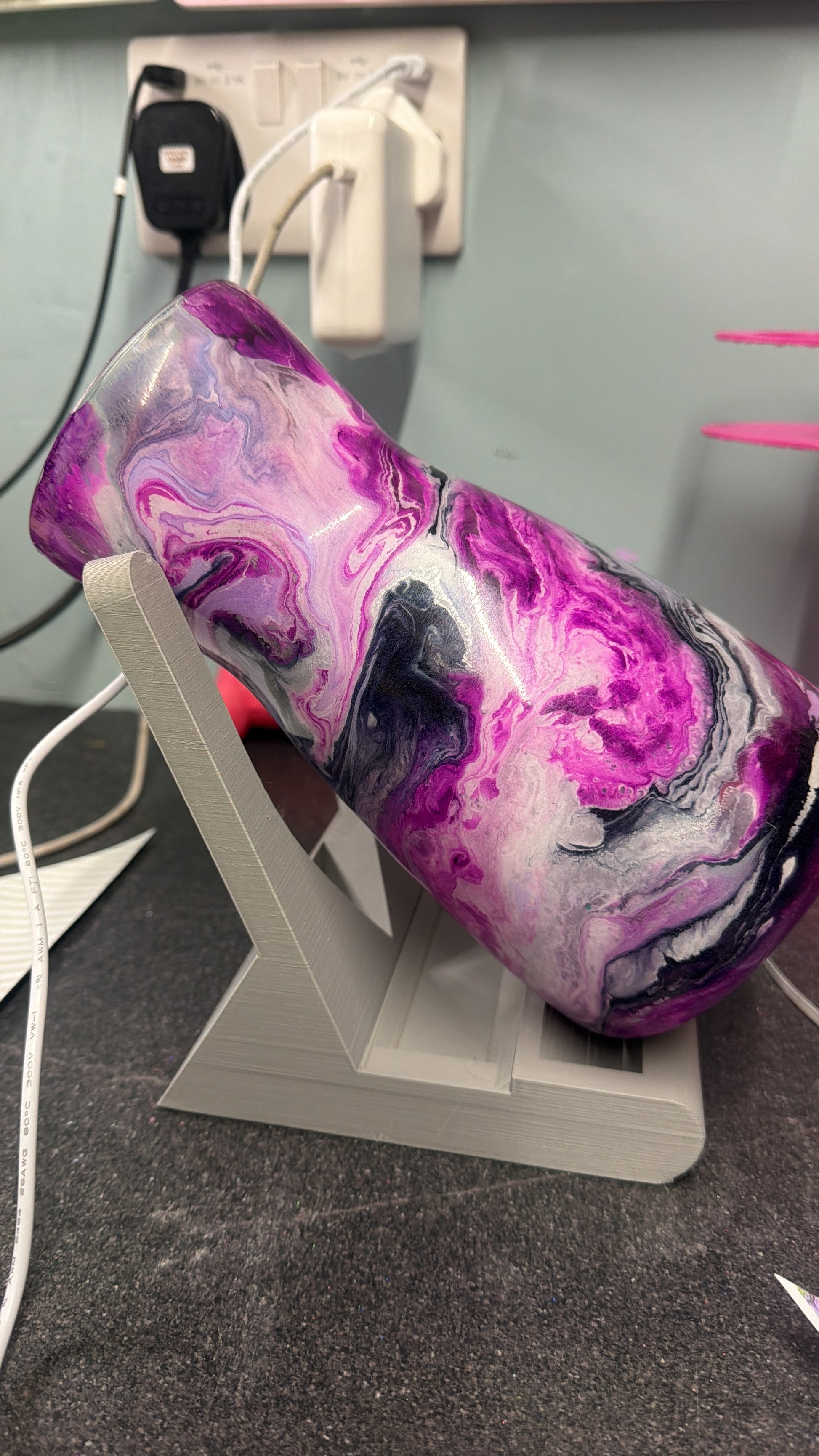 Your tumbler collection deserves a stand that keeps up! This 3D-printed holder cradles 20oz, 30oz, and 40oz tumblers plus a vase with ease—no back means handles stay perfectly accessible. Sleek, sturdy, and designed to showcase your drinkware in style. Perfect for desks, shelves, or anywhere you want your favorites on display.